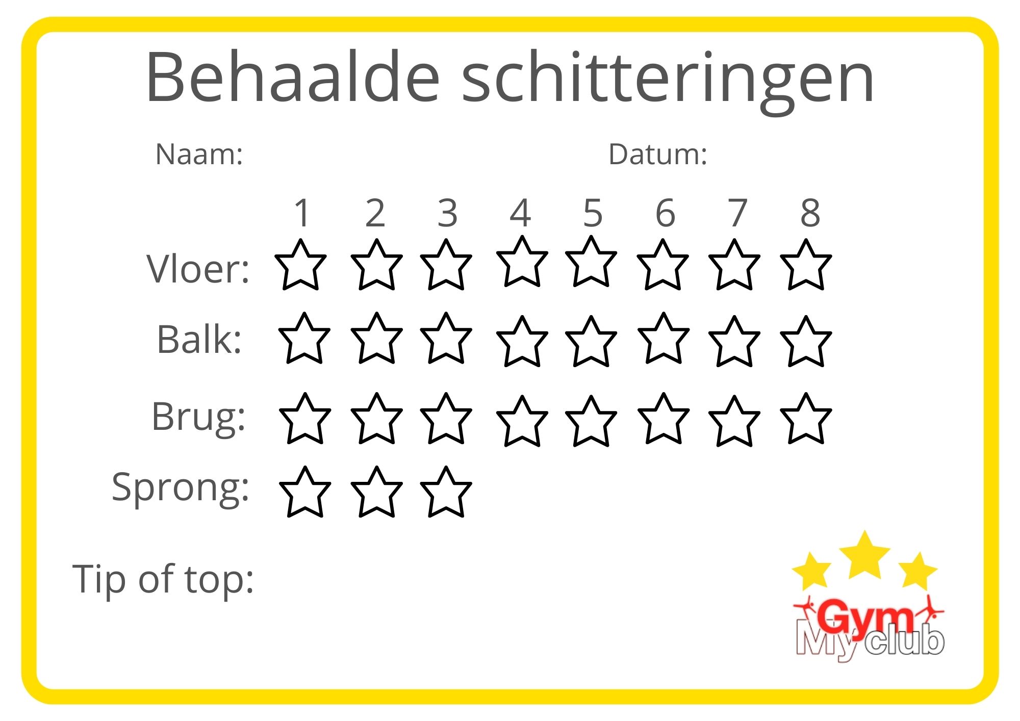 De behaalde schitteringen en een overzicht in de app om in de lessen je vorderingen te noteren. Zo weet je altijd waar je mee bezig bent en op welke datum je een schittering hebt behaald.
